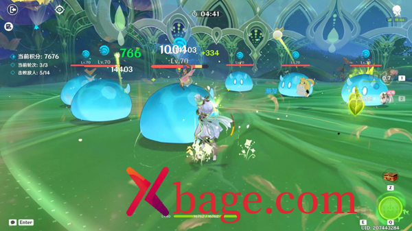 2、再去打水史莱姆,纳西妲后撤释放EQA技能。