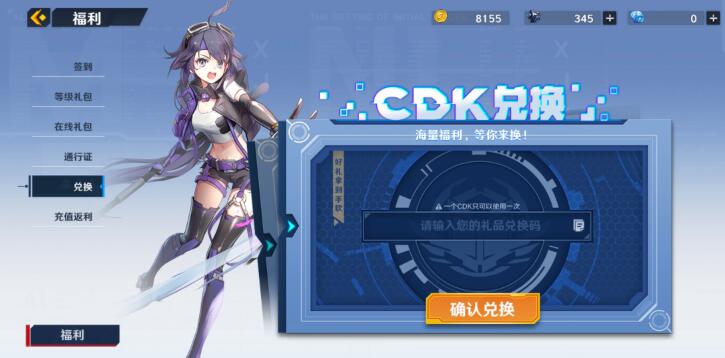 2、接着进入福利界面,点击左边的兑换,然后输入兑换码确定即可。