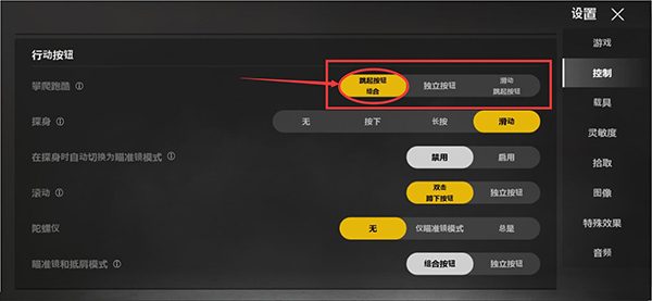 1、这个跳跃按钮在游戏的左下角,开枪的时候如果直接设置,容易影响攀爬;