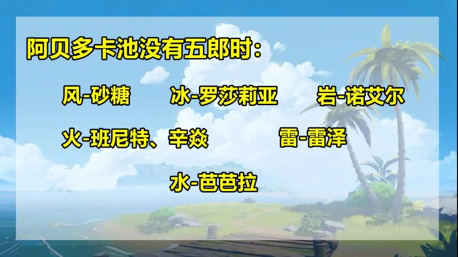 2、如果阿贝多池子没有五郎,可能出现的角色如图所示。