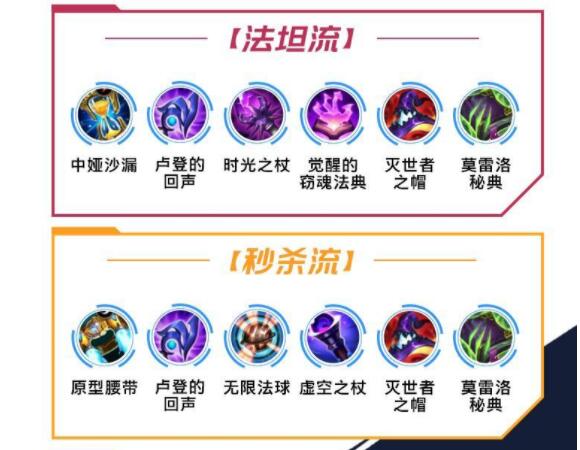 2、出装思路:这两套出装各有千秋,法坦流可以更好的持续输出,而且自由有一定的坦度,生存能力比较好,秒杀流可以轻松的打出超高的范围伤害,缺点就是太容易死了;