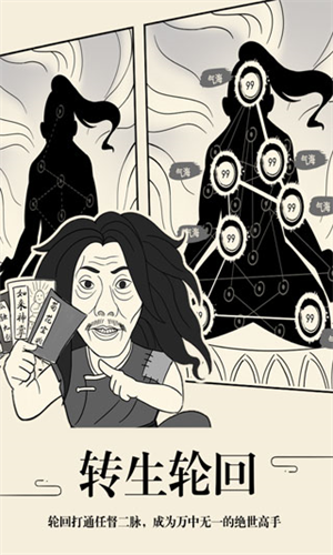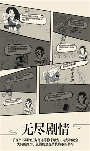某一天你打开手机,发现手机变成了一个自助投胎系统,你心想终于可以结束屌丝人生开始新生活了!结果你被穿越到了一个未知的世界,里面连穿开裆裤的小孩儿都会武功...当你被小学生虐得想哭的时候,发现你回不去了...只有习得绝世武功,干掉幕后黑手才能重获新生......这是一个需要耐心慢慢玩下去的武侠世界,你可以习得百家武功,然后自创武学成为一代宗师;你也可以按照自己的意愿“除暴安良做大侠”或者“杀人放火做恶人”;你也可以在游戏中无所事事,梳妆打扮,挖矿,钓鱼,娶老婆;你也可以在游戏中结婚生子,培养更强的儿子继续你未完成的事业。